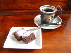 デザート&コーヒーセット 600円 ケーキとコーヒーのセットです。自家製のジャムを添えたシフォンケーキ、あんを添えたよもぎシフォン、おからとチョコのケーキなど | ||||