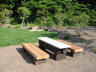 ![]() 庭に設置したテーブル |